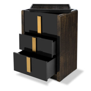 We also work with many other noble materials and finishes, such as silver leaf, eggshell, leather, mother of pearl, faux-shagreen, faux-croc, etc. which we incorporate into lacquer to create innovative mixed-material furniture and home décor accessories.