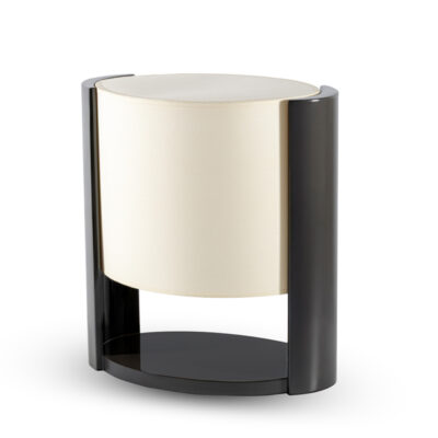 - ACAPULCO Lacquered Table Lamp was designed to impress. It is made of beautiful handcrafted Dark Chocolate lacquer on its body and white cotton fabric on its lampshade. It proudly claims an Art Deco heritage: its oval lampshade and oval frame are merged into a single body, gifting it with an intriguing silhouette. Simple, elegant, and sleek, it was designed to add a stylish touch to any room.