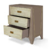 - VALERIA showcases the power of an all lacquer design approach to create a stylish chest of drawers. It includes 3 drawers with custom brass handles. Trapezoidal shapes prominently feature on its front and sides to reinforce its unique look. Finished with beautiful handcrafted Taupe lacquer and Gold & Ivory lacquer with Snakeskin pattern, VALERIA beams elegance and style.