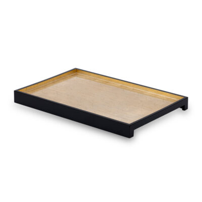 - DELICIA là khay hình chữ nhật độc đáo được làm bằng sơn mài đen và sơn mài lá bạc Champagne có họa tiết. Phong cách và chức năng là cốt lõi trong thiết kế của nó. Các bức tường bên cao bằng một nửa tạo ra các khoảng trống ở phía dưới, đóng vai trò như các tay cầm "tự nhiên". Thiết kế không có quai xách mang lại cho DELICIA vẻ ngoài tối giản và thanh lịch.