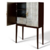 - Đằng sau 2 cánh cửa, IMPERIA để lộ 2 ngăn kéo lót nhung đen và 4 ngăn để đựng chai, ly và phụ kiện quầy bar. Mặt sau của mỗi ngăn được phủ kín bằng một tấm gương lớn.