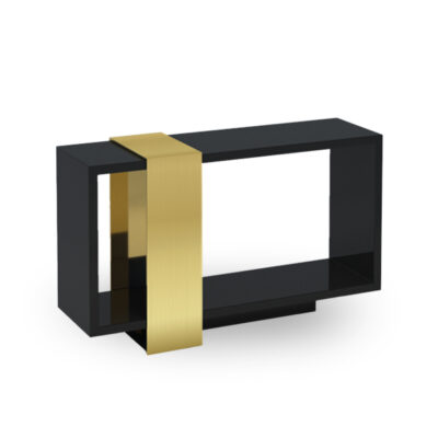 - Bàn console sơn mài PRIMA thể hiện sự kết hợp tuyệt vời giữa sơn mài và đồng thau trong thiết kế đồ nội thất. Sản phẩm được thiết kế để mang đến nét hiện đại và phong cách cho hành lang, phòng ăn hoặc bất cứ nơi nào cần một chiếc bàn hẹp. Nó có 2 khung hình chữ nhật được thiết lập theo hướng vuông góc: khung nhỏ hơn khung được làm bằng thép không gỉ mạ đồng trong khi khung lớn hơn được làm bằng sơn mài đen.