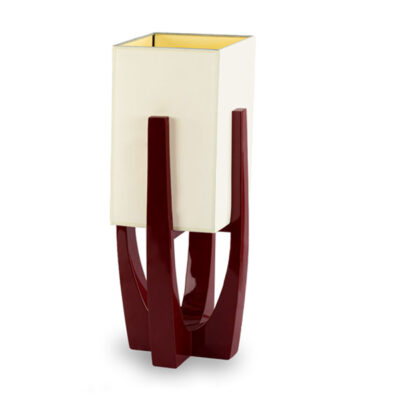 - GEM is a lacquered table lamp radiating simple elegance and style: its suspended lampshade shines like a "diamond in the sky" while shedding light on its eggshell and lacquer receptacle. Its body is made of handcrafted Black lacquer and Eggshell lacquer while its shade is made of white cotton fabric. Sleek design, purity of lines, and materials mixing are the sources of GEM's originality and elegance.