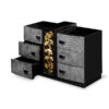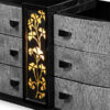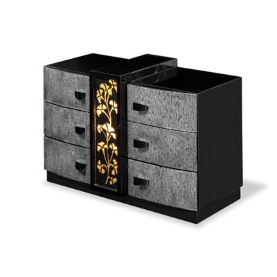 - Its top and 2 sides are finished with black lacquer. Its drawer fronts are finished with Silver & Black lacquer with Mai Home's Washed pattern.