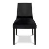 - DELIA is a lacquered dining chair with timeless elegance. Its minimalist yet modern design is derived from the gently curved and smooth lines of its backrest in harmonious contrast with the straight lines of its leg frame. Finished with handcrafted black lacquer on its wooded frame and black fabric on its upholstered seat, its "all-black" appearance contributes to its intriguing yet sophisticated character.