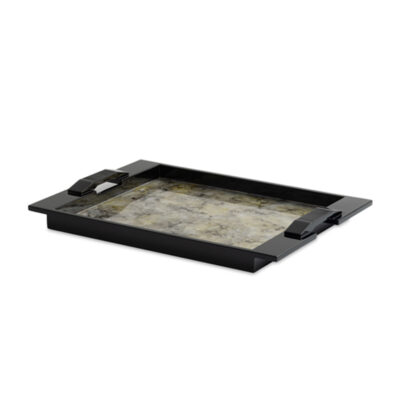 - DIMA is a unique square tray in Black lacquer and line-textured Champagne Silver Leaf lacquer. Style and functionality are at the core of its design. Half-height lateral walls create void spaces at its bottom, which serve as "natural" handles. Its design without apparent handles gives DIMA its minimalist and elegant look.