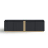 - A brass band surrounds its recessed base while attractive brass decorative accents separate the cabinet in 2 halves. These metal accents provide a harmonious contrast to the dark colors of its body. Behind its 4 doors, DIVA features 8 storage compartments.