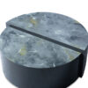 - RENATA is a stylish round lacquer coffee table with surprising shape and form. It is designed as 2 twin half drums placed side by side: the larger and higher half drum dominates its smaller and shorter cousin. It is finished with handcrafted Grey lacquer on its side and Grey Venetian Marble Pattern lacquer on its top. It is adorned by stylish polished stainless bands on its recessed base.