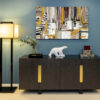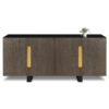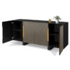 - SASHA is a fine lacquer sideboard which showcases the successful association of mixed materials to create stylish lacquer furniture. Its elegance is reinforced by attractive textures and colors: grey wood veneer on its door fronts, black lacquer on its top and sides, brass on its handles, black steel on its legs. They further stress its tasteful colorway in grey, black, and gold used throughout SASHA's design. Behind its 4 doors, its interiors reveal 8 storage compartments which can be used to store china and cutlery.