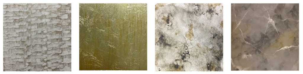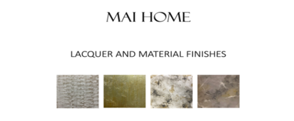 Ví dụ về các mẫu sơn mài của chúng tôi là sơn mài đá cẩm thạch, sơn mài da rắn, sơn mài chải, sơn mài rửa, sơn mài xoáy, sơn mài mây, sơn mài patina, v.v. Một số ví dụ về lớp hoàn thiện vật liệu đặc biệt của chúng tôi là lá bạc, vỏ trứng, vỏ sò, da cá đuối giả, da trăn giả, da cá sấu giả, da lanh giả, v.v.